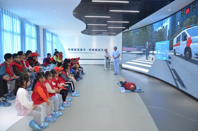 小记者们在护理系实训基地现场体验VR及3D急救实训操作,学习心肺复苏的相关知识。
