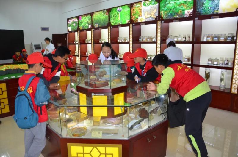 小记者们在康复技术系实训基地观看针灸、火罐、艾灸等实训操作和中草药药物标本,听老师讲述云南省中草药分布情况。