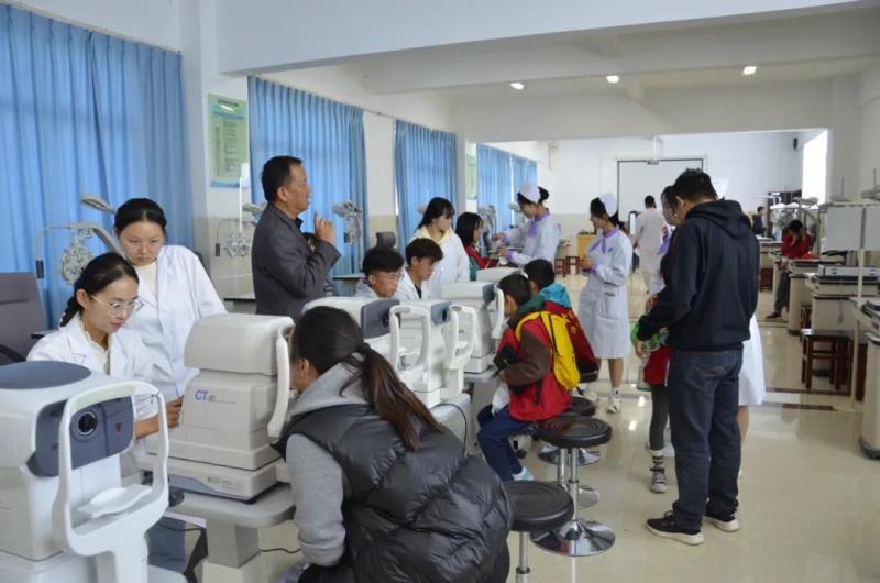 小记者们在医学技术系实训基地参观学习,了解眼睛的基本构成及护眼常识。