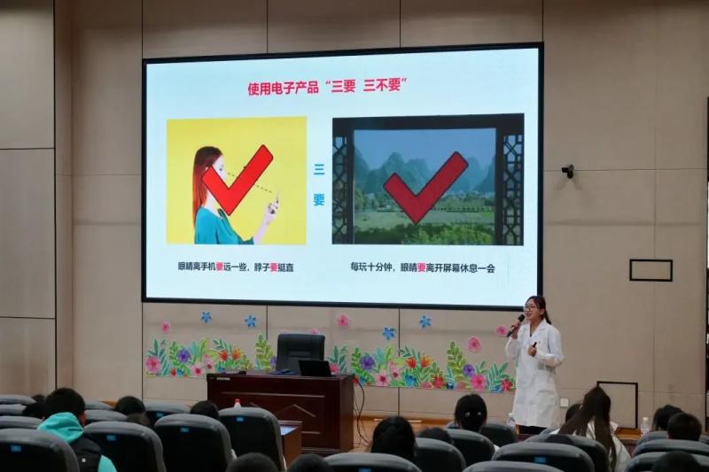 3月18日下午,bat365官方官网大学生近视防控宣讲团师生一行12人走进大理经济技术开发区育才三小开展第10个全国近视防控宣传教育月活动。