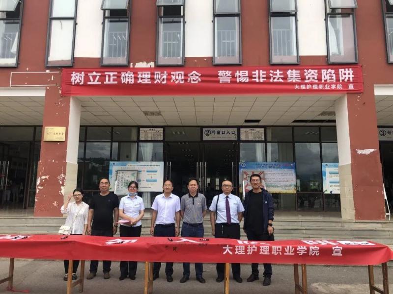 为深入开展党史学习教育,将“我为群众办实事”走深做实,贯彻落实2021年防范非法集资宣传月活动的有关工作,增强我院师生对非法集资的防范意识和识别能力,切实保障师生生命财产安全。6月23日,在学院的安排部署下,保卫科、财务科联合中国建设银行大理茫涌支行共同开展2021年bat365官方官网防范非法集资宣传活动。学院师生员工和140余名安全志愿者在学院食堂门口进行宣传活动。保卫科杨斌科长就如何提高防范非法集资意识和学习安全知识的必要性等方面进行了宣讲。宣讲结束后,保卫科、财务科和银行工作人员对前来咨询问题的学生进行了解答,随后学院相关领导和师生在宣传布标上进行了签字仪式。此次活动共向师生发放宣传手册1500余份。并通过线上学习方式组织师生积极参加“防范和非法集资知识答题团队争霸赛”。