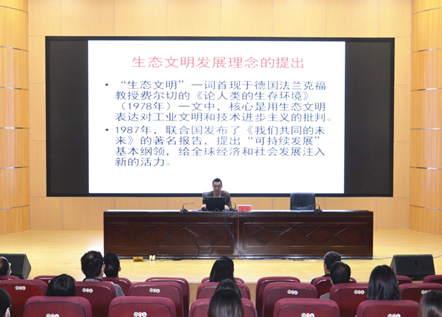 王飞教授聚焦习近平生态文明思想,紧紧围绕世界各国目前面临的严峻环境问题与生态危机、生态文明发展理念、习近平生态文明思想的形成过程及内涵发展、建设美丽中国的目标任务等问题进行了科学诠释和透彻讲解。