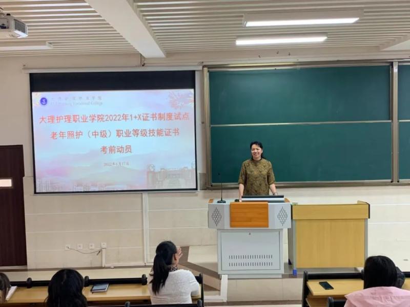 为深入贯彻《国家职业教育改革实施方案》及教育部《关于在院校实施“学历证书+若干职业技术技能等级证书”制度试点方案》文件精神,推进“1+X”老年照护试点项目的实施,实现训育结合,推动三教改革,2022年6月22-23日,我校启动“1+X”老年照护职业技能等级证书首轮考核,老年保健与管理、中医养生保健、健康管理专业共71名学生参加了该项考核。