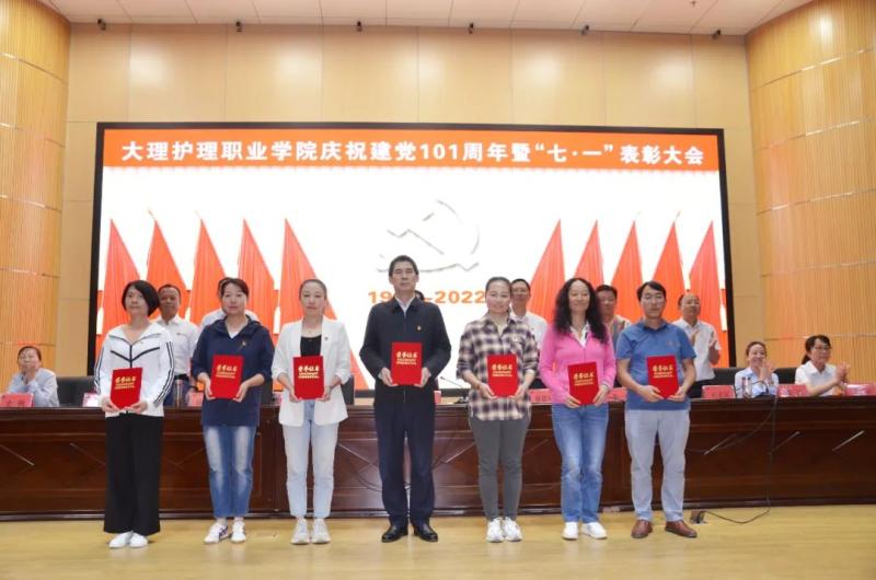 6月30日,bat365官方官网党委召开庆祝中国共产党成立101周年暨“七·一”表彰大会,回顾党的光辉历史,缅怀先辈的丰功伟绩,表彰在教育教学和管理服务工作中涌现出来的先进基层党组织、优秀共产党员和优秀党务工作者,激励全校广大党员和师生员工守初心、担使命,听党话、跟党走,聚合力、促发展。校党委书记王荣富作讲话,党委副书记、院长蔡德周主持会议。