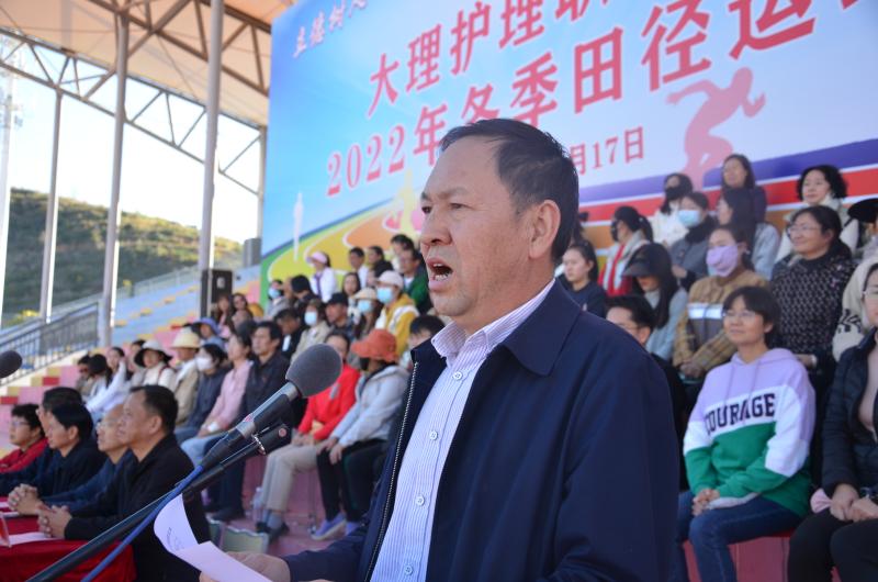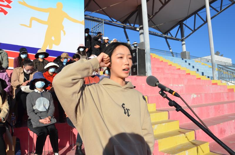 17日8:30,在奏唱中华人民共和国国歌雄壮的歌声中运动会拉开了序幕。学校党委专职副书记字利鹏宣布bat365官方官网2022年冬季田径运动会开幕。学校党委副书记、院长蔡德周致辞。学校教师普晋清、中医养生保健2101班学生李英分别代表裁判员和运动员宣誓。副院长郭向周主持开幕式。