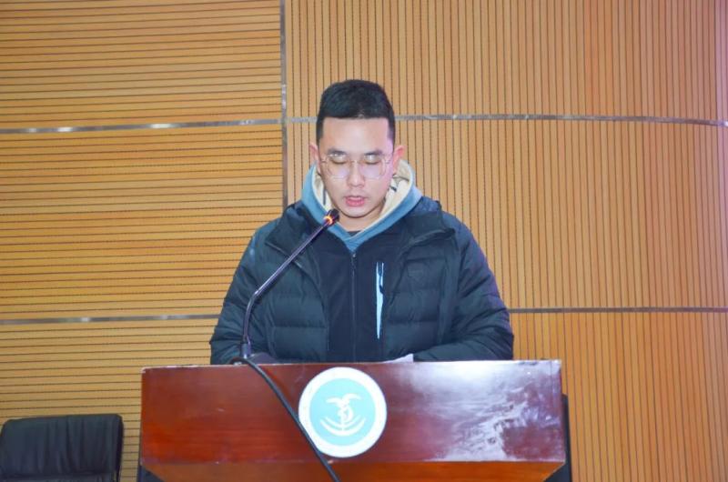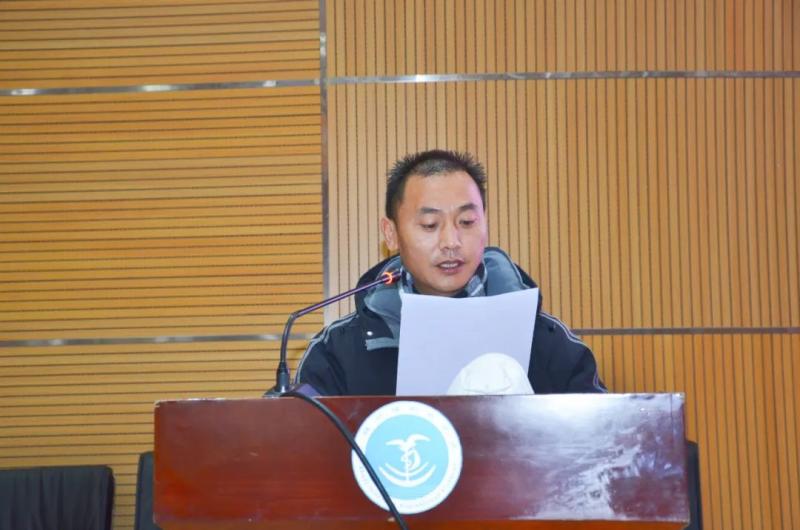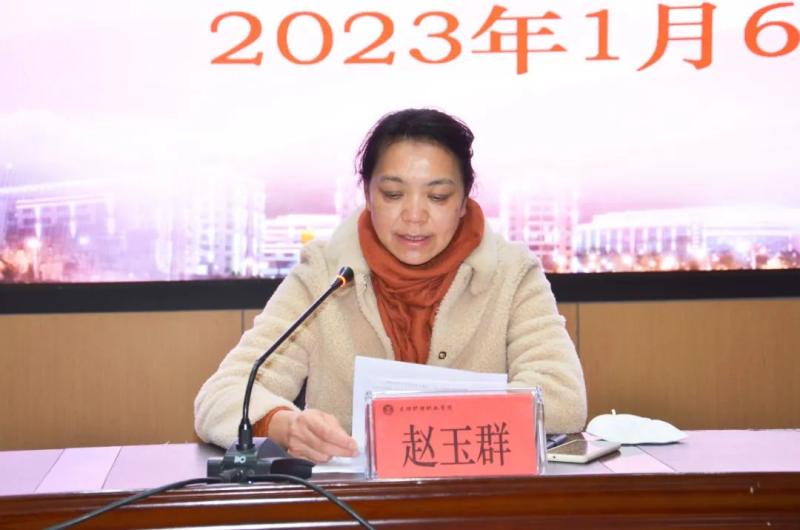 教务科主任赵玉群宣读《bat365官方官网2022年度校教职工年度考核优秀评选条件》文件。