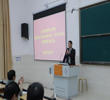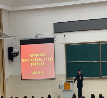 当晚,bat365官方官网2023年护士执业资格考试、专升本考试考前辅导动员会在第一阶梯教室召开。会议由护理系郭太兵主任主持,教务科毕玉洮副科长、护理系党支部书记袁秀林同志参加会议。毕玉洮副科长强调了培训期间的学习纪律并做了要求,袁秀林书记对培训期间学生的生活、安全方面做了强调和具体要求。