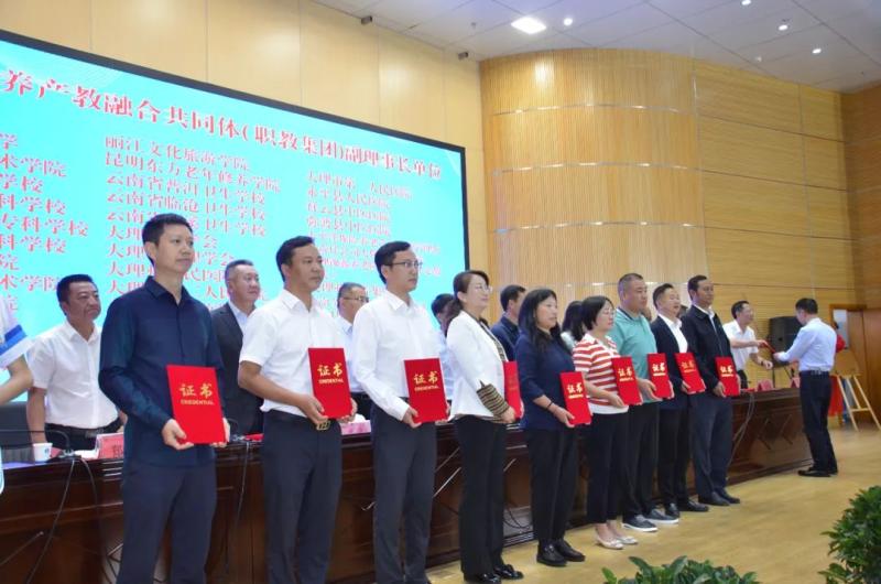 会议强调,推进教育资源与市场资源有机结合的跨越,是优化职业教育类型定位,坚持以教促产、以产助教、产教融合、产学合作,延伸教育链、服务产业链、支撑供应链、打造人才链、提升价值链的又一次探索。滇西文旅康养产教融合共同体(职教集团)要齐心聚力共同完成职业教育改革相关工作任务,助推全州职业教育跨越转型发展再上新台阶。