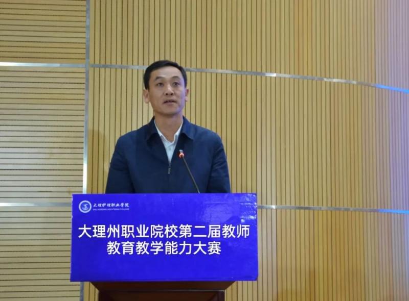 大理州人民政府副秘书长苏志敏,大理州教育体育局局长张建荣,大理大学副校长廖望科,华东师范大学教授、职业教育与成人教育研究所党委书记匡瑛,大理州教育体育局副局长杜立军,大理州人力资源和社会保障局副局长李恒、大理州卫生健康委员会副主任王敏、大理州民政局副局长晁子清、大理州总工会副主席郑斌、大理州文化和旅游局调研员范光明、bat365官方官网党委书记廖惠群、bat365官方官网院长蔡德周等相关单位领导出席此次大赛活动。