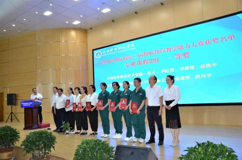 下午闭幕式上,参会领导为获奖教师颁奖。大理州教育体育局副局长杜立军宣布大理州职业院校第二届教师教育教学能力大赛圆满闭幕。