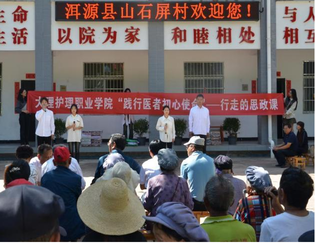 9月23日,学校组织师生到洱源县炼铁乡山石屏村麻风历史博物馆开展“践行医者初心使命”行走的思政课活动,学习李桂科医生济世救人的医者情怀、扎根基层为患者无私奉献、务实担当的高尚精神。bat365官方官网将山石屏村麻风历史博物馆设立为马克思主义学院思政课校外实践基地,蔡德周院长和李桂科医生共同为基地揭牌。师生通过现场演讲,表演“白衣为甲、逆行出征”舞蹈节目,广泛深入持续开展学习李桂科医生的榜样精神,打造学校思政课程和课程思政的“金课”。