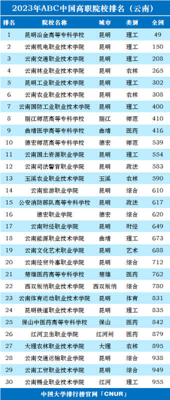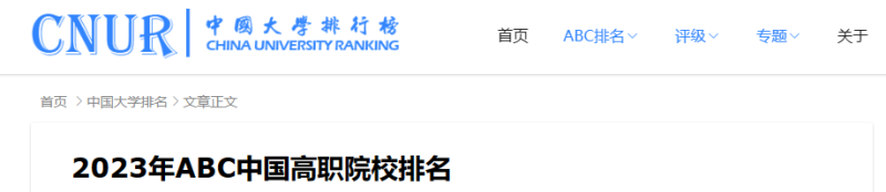 据悉,评价对象为具有一定办学经验、以学历教育为主、在招生状态的高职高专院校,通过科学的评价方法,从1500余所院校中比较研究得出综合实力位居前列的院校。该评价成果由ABC咨询机构编制完成,是ABC中国大学排名的重要分支,将持续每年发布。