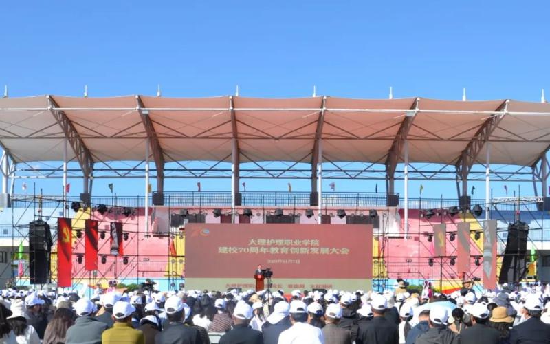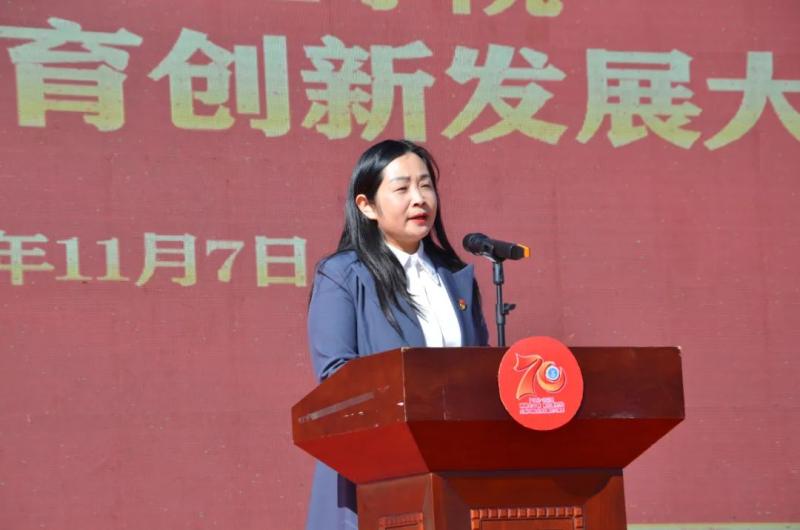 11月7日,bat365官方官网召开建校70周年教育创新发展大会。会上,中共大理州委常委、州委副书记肖创勇讲话,大理州人民政府副州长杨泽亮致辞,bat365官方官网党委书记廖惠群主持会议,党委副书记、院长蔡德周作主旨演讲,校友代表大理州卫健委副主任李宏军、教师代表茶国萍和学生代表李静分别发言。
