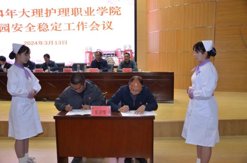 石龙富代表学校与各科室、系部主要负责人签订《2024年度综治维稳、平安校园、消防、食品等安全工作责任书》。