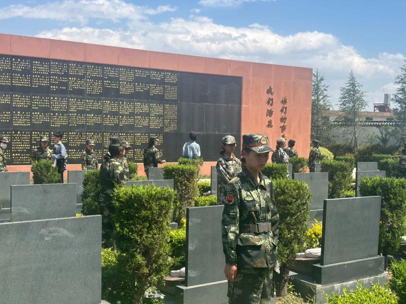 在大理烈士陵园,师生们整齐列队,面向烈士纪念碑,庄重肃穆,向革命先烈默哀,敬献花篮,祭扫烈士墓,讲述烈士的英雄事迹,开展“缅怀革命先辈·传承红色基因”主题演讲,国旗护卫队举行庄严宣誓。