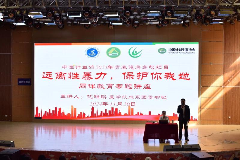 11月20日,为进一步推进我校“中国计生协2024年青春健康高校项目”,提升学生的自我保护意识和法律意识。学校护理系党支部、医学技术系党支部、校团委、科研部和妇联联合开展“预防性暴力,保护你我她”专题讲座(女生专场)。本次活动共500余名师生参与。活动由护理系团委、医学技术系团委、青春健康同伴社承办。