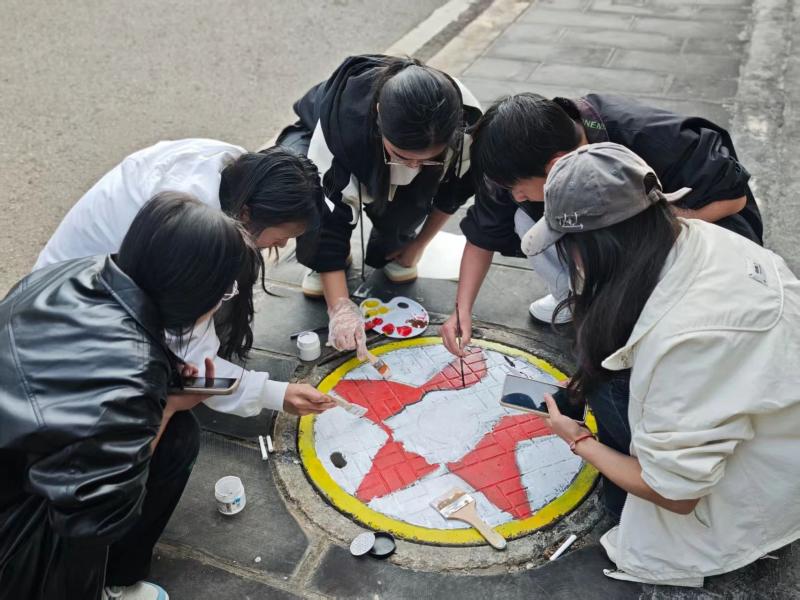 活动现场,学生们手持画笔,俯身在井盖上细心描绘,色彩斑斓的图案逐渐浮现,春日的校园因此焕发出别样的生机。每一笔勾勒,都是青春的印记;每一抹色彩,都是梦想的绽放。井盖虽小,却承载着无限创意,成为校园文化的一道亮丽风景线。