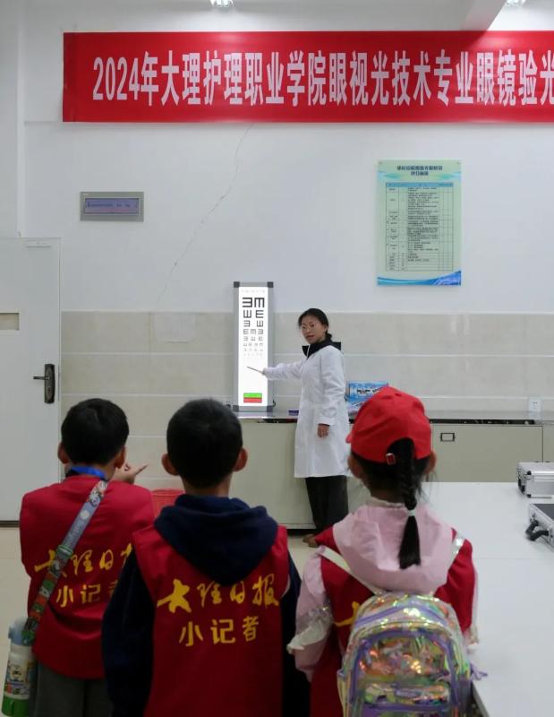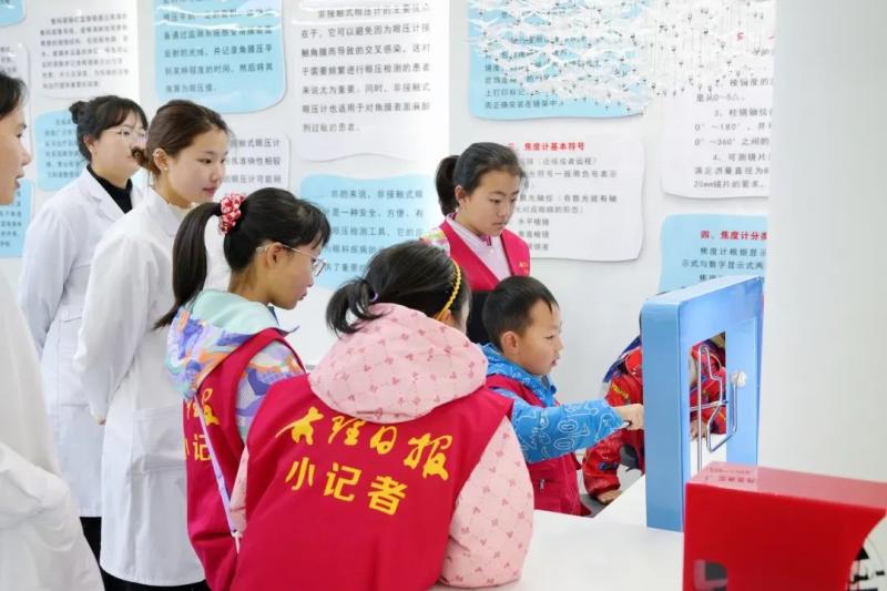 这次活动由学校党委宣传部牵头组织,眼视光技术专业全体教师带领学校大学生近视防控宣讲团成员、爱眼护眼志愿者服务队参与,小记者们通过亲身体验眼睛视觉功能的奥秘,实践眼健康检查、近距离聆听老师和哥哥姐姐讲解如何预防近视,互动答疑、实地深度沉浸式体验,帮助小记者掌握科学护眼知识,养成爱眼护眼好习惯,增强近视防控的自律性和依从性。 通过小记者们的宣传,助力儿童青少年“抓早抓小抓关键,更快降低近视率”。