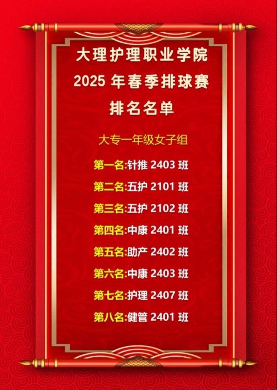 bat365官方官网2025年春季排球比赛获奖班级如下: