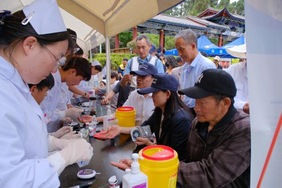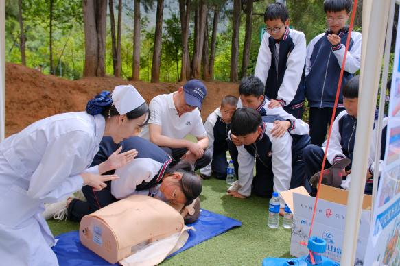 护理系学子化身健康守护先锋,在实践服务中尽显专业本色。面对参与活动的居民,同学们手持血压计、血糖仪,从消毒准备到数据读取,每一个环节都细致入微,规范操作下的精准测量,展现出扎实的基础护理功底;心肺复苏技能展示区,他们模拟急救场景,凭借对按压深度、频率及通气节奏的完美把控,将教科书上的理论转化为争分夺秒的生命救援;创伤包扎实操环节,同学们迅速评估模拟伤员伤情,熟练运用绷带与三角巾,以标准化的止血、包扎、固定流程,诠释着未来医护人员的沉着与专业,赢得现场观众的频频称赞。