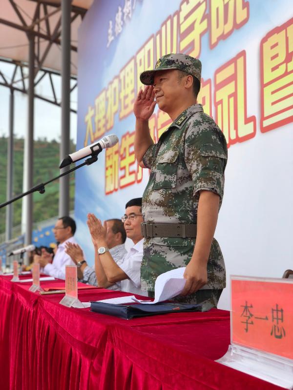 教师代表茶国萍、新生代表李珏璇也分别进行了发言,她们都对学院领导、教师、教官表示由衷的感谢,表达了坚决完成军训任务的的信心和决心。
