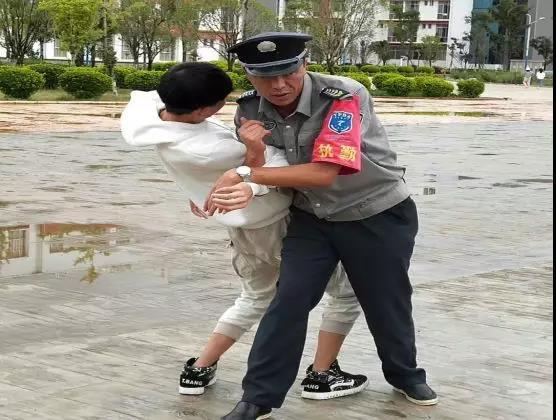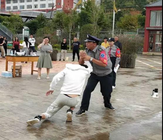 第二个环节《自卫招式演练》,由大理云鹏保安公司队长(沙昆斌)带领一名保安人员进行了“三套简单实用的自卫招式”演示。