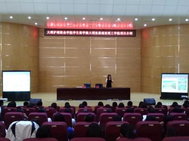 9月26日下午,中职涉外护理班全体学生和高职专科班学生代表300多人齐聚瞻远楼四楼报告厅,与澳大利亚桑瑞亚理工学院市场部经理张华英老师针对学生留学澳大利亚桑瑞亚理工学院项目开展了交流。招生就业处、教务处和英语专业的多位老师、中职涉外护理班学生、高职学生代表(班长和学习委员)参加了会议,会议由科研处老师李琴主持。