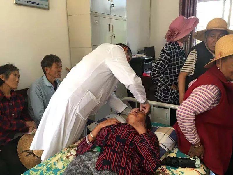 在义诊活动现场,众多村民前来义诊。各位义诊的师生耐心倾听, 认真询问,诊断疾病,科学治疗,讲解常见病的防治知识。对一些听力不好的就医群众,专家们也是面对面、 零距离, 细声问、耐心听。各位专家在为群众看病的同时不忘为旁边的同学讲解检查的要点及提问。此次义诊活动为弥渡县龙华村就诊群众发放了1000元的免费药品。
