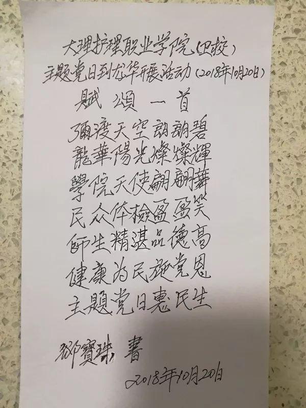 “弥渡天空郎朗碧,龙华阳光熠熠辉,学院天使偏偏舞,民众体检盈盈笑,师生精湛品德高,健康为民施党恩,主题当日惠民生”, 就诊结束后,村民郤宝珠有感而发,赋颂诗一首表达了大家的心声。义诊活动的开展,切实让群众感受到党组织为群众办实事,提升了党组织在群众中的威望。