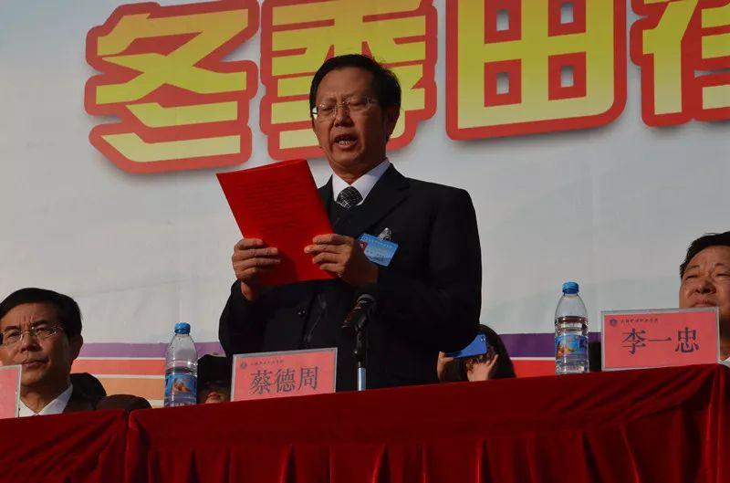 本次开幕式上,蔡德周进行了“站在新时代 拥有新作为 谱写新篇章”的讲话。讲话中,蔡德周指出:为深入贯彻“面向全体,全面发展”的教育理念,深入实施素质教育,不断提高学生的身体健康素质。学院在校庆期间举办2018年冬季田径运动会。经过组委会的紧张筹备,为期两天的运动会也随之拉开了帷幕。为此,代表学院党政领导班子向为运动会的顺利召开付出辛勤努力的各位教职工表示衷心的感谢!同时也希望全体运动员本着友谊第一、比赛第二的团队精神,认真参加各项体育竞赛,发挥出自己的最佳竞技水平,以优异的成绩为班级争光添彩;全体裁判员要公正裁判,不留争议。未参赛同学要积极发扬团队协作精神,树立服务全局意识,为全体运动员做好后勤保障工作,为运动员加油鼓劲,凝聚青春正能量,同时要注意大赛安全,杜绝安全事件的发生。衷心祝愿体育健儿们在运动场上一展风采,赛出友谊,赛出风格,赛出水平!