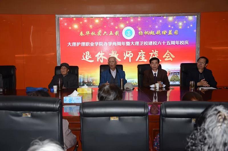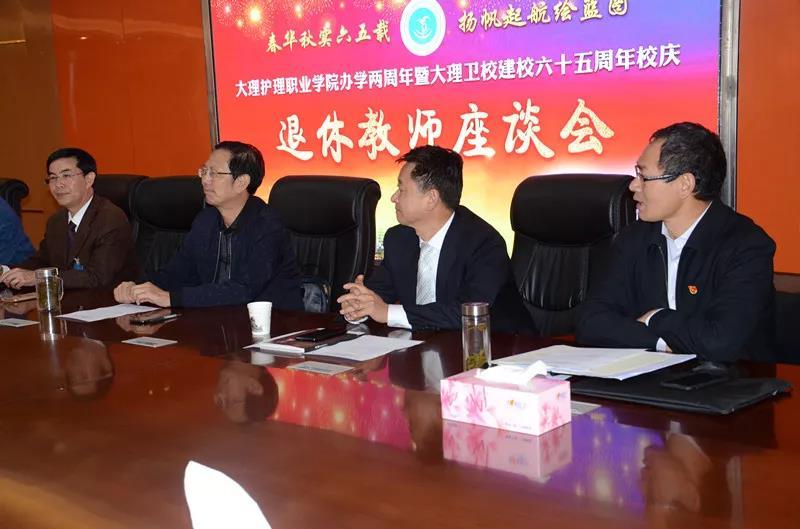 在隆重庆祝bat365官方官网办学两周年暨大理卫校建校六十五周年之际,学院召开离退休教师座谈会,紧紧围绕“忆过去、看现在、思未来”这一主题,虚心倾听离退休老教师的意见建议,共谋学院未来发展。学院党委委员、副院长陈跃祥主持座谈会,院领导、科级干部、系(部)党政负责人和离退休老教师参加了会议。