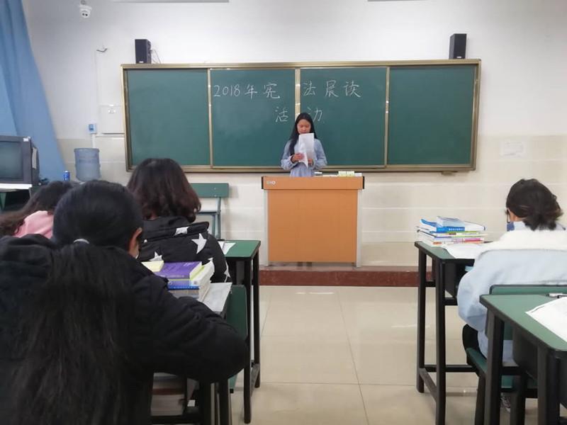 根据《云南省教育厅关于开展2018年国家宪法日主题教育活动的通知》要求,2018年12月4日学院组织师生开展以“尊崇宪法、学习宪法、遵守宪法、维护宪法、运用宪法”为主题的宪法诵读活动和主题班会。上午8点三个系部共66个班3700多名在校学生,在班干部带领下,准时进行宪法晨读活动。通过开展宪法诵读和宪法主题班会,同学们了解宪法、认识宪法,牢固树立了宪法意识。