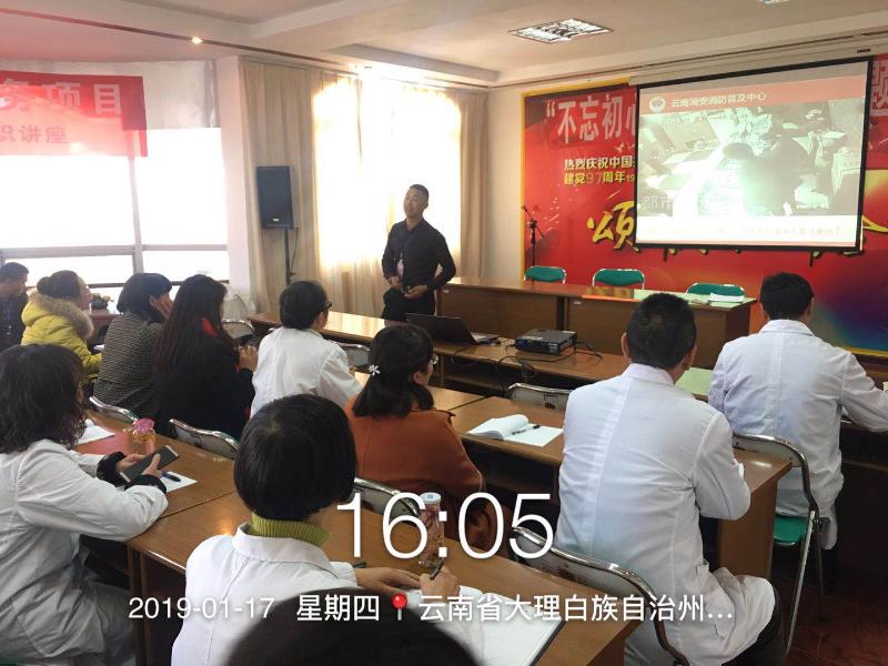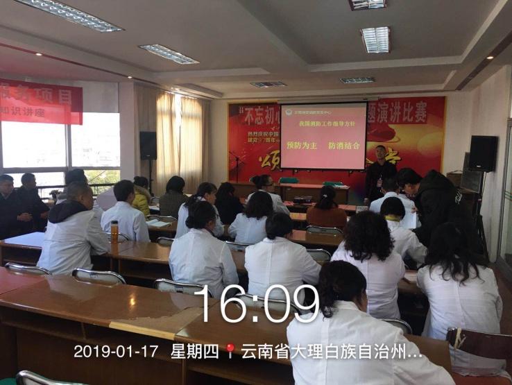 为进一步加强安全生产工作,增强职工消防安全意识,提高消防应急处置能力,根据《大理州卫计委 “安全生产月”活动实施方案》的安排部署, 1月17日,bat365官方官网门诊部开展了一场消防安全知识讲座,讲座邀请了云南省消安消防普及中心的专家为我们讲授。