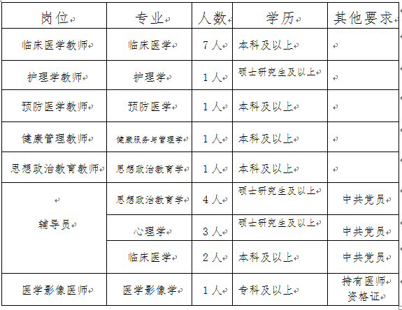 (七)教师和辅导员岗位年龄在40周岁以下(1979年5月后出生),医学影像学岗位年龄不限。