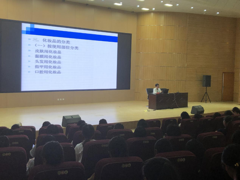 5月22日下午14:00在我院瞻远楼大厅组织开展了化妆品宣传活动,通过发放化妆品科普宣传资料、化妆品知识宣传手册、摆放标语展板、视频播放等多种形式,向同学们介绍化妆品基本知识以及如何正确选购和使用化妆品、正确认识化妆品功效和不良反应等内容。此外还邀请了大理大学第一附属医院皮肤科主任黄玲教授在学院瞻远楼四楼第二报告厅开展主题讲座。黄玲主任结合“5.25爱肤日”,教会了同学们怎样护理与美容皮肤,消除了同学们购买和使用化妆品的误区,有效提升了青年学生对化妆品安全的认知水平。