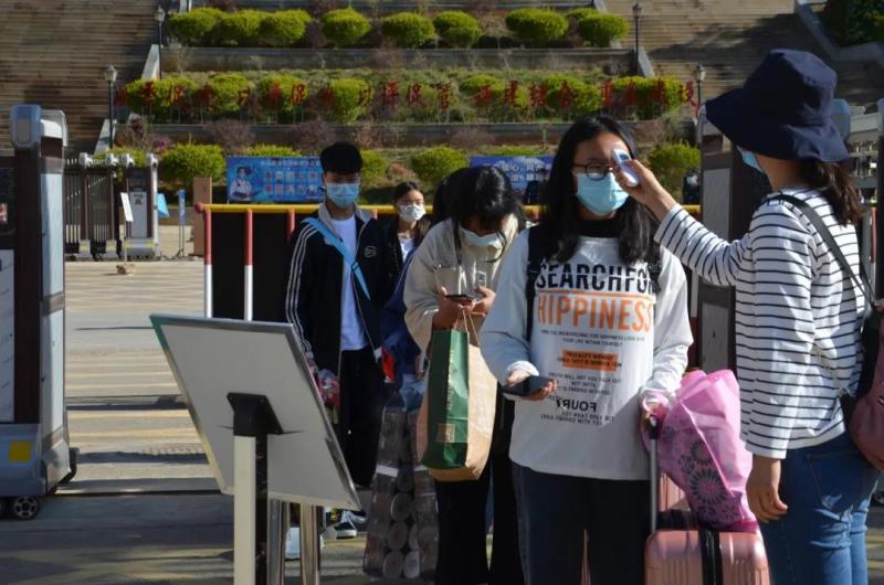 为了迎接同学们的到来,学校做了充分准备。上午8点,保卫处、学生处、团委、后勤处、护理系、康复系等职能部门已经蓄势待发、严阵以待做好学生扫健康码、测体温、行李消毒、鞋底消毒、手消毒、换口罩、详细填写健康承诺书并签字等开学工作,学生根据标识进入学校,保持一定的距离,秩序良好,截止下午6点,1100余名同学安全有序返校。