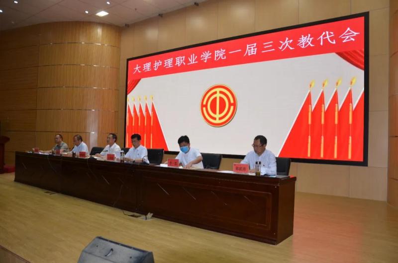 院党委副书记、院长蔡德周代表学院向大会作2019年学院工作报告。他指出,学院在州委、州政府的正确领导下,在省、州教育、卫健部门的关心支持和指导帮助下,以学院人才培养合格评估为中心工作,扎实开展“不忘初心,牢记使命”主题教育,促进学院科学化、规范化管理水平再上新台阶。报告对2019年学院工作进行了全面回顾。