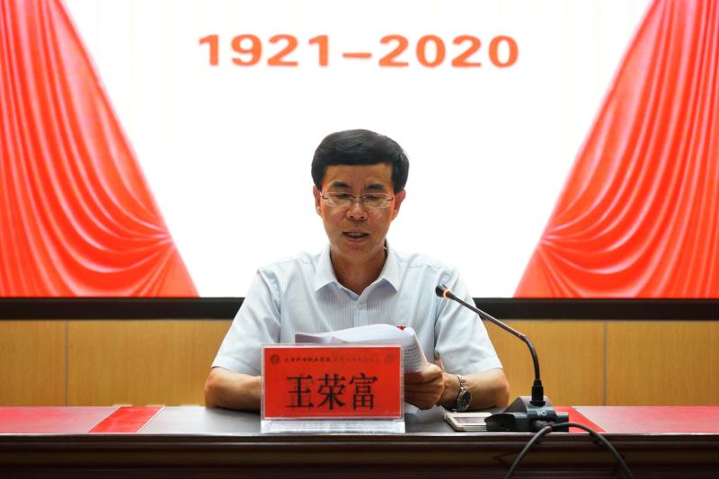 王荣富要求,学院全体党员、广大教职员工要以习近平新时代中国特色社会主义思想和党的十九大、十九届四中全会精神为指引,以更加坚定的信心、更加高昂的斗志、更加务实的作风,更加突出的业绩,建功立业新时代;他希望广大青年学生要把庆祝建党99周年激发的热情转化为学习的动力,珍惜时光、刻苦学习、勇立潮头、奋勇搏击,不负韶华,在实现中国梦的生动实践中放飞青春梦想,在为人民利益的不懈奋斗中书写人生华章。