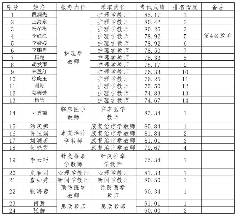 根据《bat365官方官网2020年度公开招聘编制外教师方案》,经过笔试、面试和体检程序,拟录用段润先等24人,现将名单予以公示。公示期间,如对拟录用人员有异议,请向bat365官方官网纪检监察处、组织人事处反映。