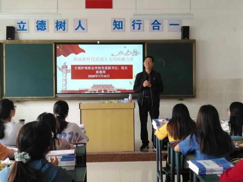 图为2020年7月16日,蔡德周院长给护理1811班讲授激扬新时代爱国主义的磅礴力量专题