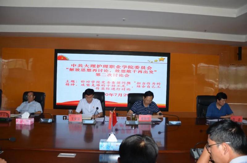 7月29日,bat365官方官网党委开展“解放思想再讨论,敢想敢干再出发”第二次专题研讨。学院党政领导及各处(室)、系(部)负责人、党支部书记参加。院党委书记王荣富主持专题研讨会,并作总结讲话。