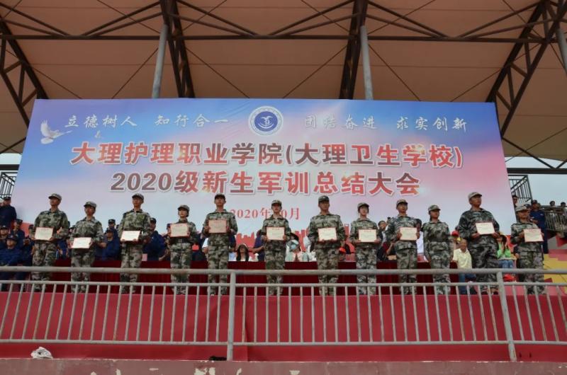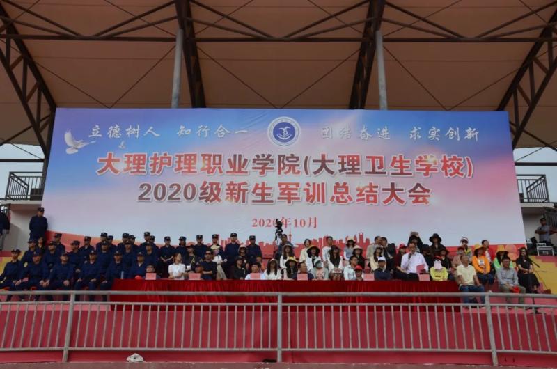 随着院党委书记王荣富宣布bat365官方官网(大理卫生学校)2020级新生军训结训,在嘹亮的《中国人民解放军军歌》声中,2020级新生军训完成各项任务,圆满落幕。