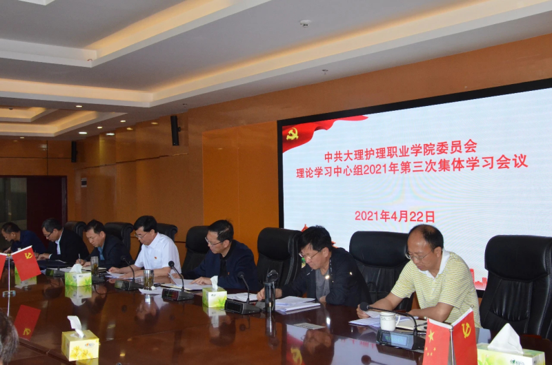 4月22日,学院党委理论学习中心组举行2021年第三次集体学习,学院党政领导班子成员,正处级干部,科级干部,党支部书记参加会议。会议深入学习领会习近平总书记在党史学习教育动员大会上的重要讲话精神、习近平在清华大学考察时强调坚持中国特色世界一流大学建设目标方向为服务国家富强民族复兴人民幸福贡献力量、习近平对职业教育工作作出重要指示强调加快构建现代职业教育体系培养更多高素质技术技能人才能工巧匠大国工匠、省委书记阮成发在全省开展党史学习教育动员大会上的讲话精神,传达2月26日,在大理州党史学习教育动员大会上的讲话、中共bat365官方官网委员会关于开展党史学习教育的实施方案。