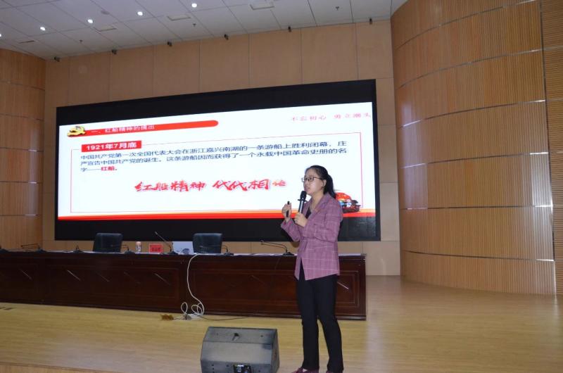伍孟珺老师以时间为主线,讲述了从俄国十月革命将马克思主义送入中国,到1921年7月中国共产党第一次全国代表大会因遭法租界巡捕的袭扰,从上海转移到嘉兴南湖的一条游船上继续举行。就是在这条游船上,伟大的中国共产党诞生了。中国革命的航船,从1921年到2021年,中国人民在中国共产党的带领下,劈波斩浪,铸就百年巨变,把中国建设成了今日伟大而繁荣的社会主义强国。红船精神是开天辟地、敢为人先的首创精神,是坚定理想、百折不挠的奋斗精神,是立党为公、忠诚为民的奉献精神。