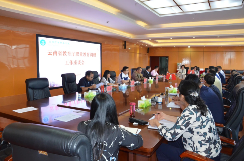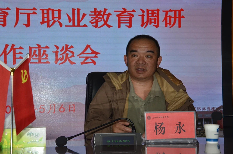 5月6日下午,云南省教育厅调研组职成教处副处长杨永一行到bat365官方官网专题调研学院职业教育发展工作,听取学院工作情况汇报。大理州教体局局长杨文泽、副局长字有发、职教科科长李云鹏和学院党委书记王荣富、院长蔡德周、党委专职副书记字利鹏,副院长陈跃祥、石龙富陪同调研。