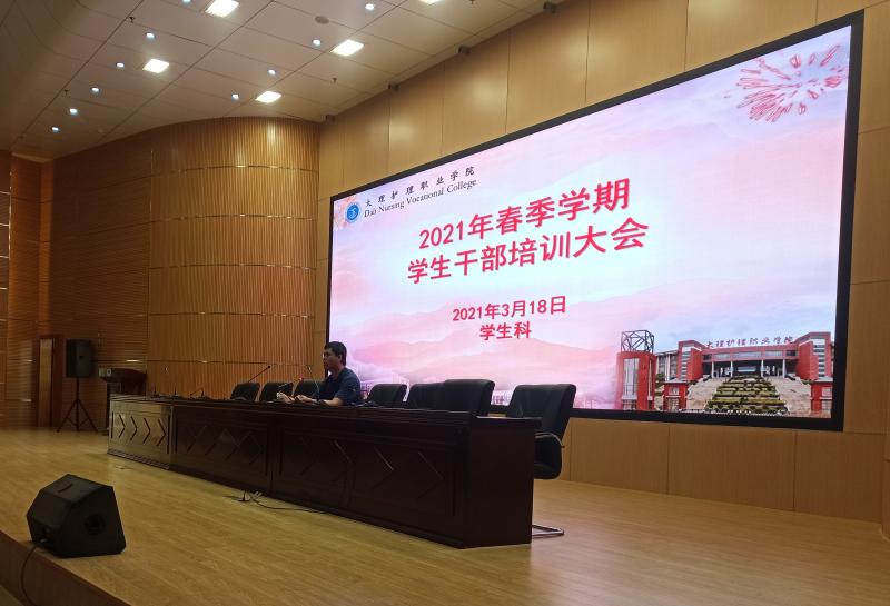 为进一步做好我院学生管理工作,加强学生干部队伍建设,提高学生干部队伍管理能力,增强学生干部安全观念和纪律意识,2021年3月18日,由学生科主持召开的2021年春季学期学生干培训大会在第二报告厅举行。全校各班级班长、卫生委员、纪律委员参加了会议。