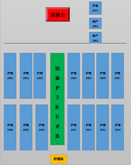 1、7:40前,参加升旗仪式所有人员规范着装入场,按规定要求整齐列队。