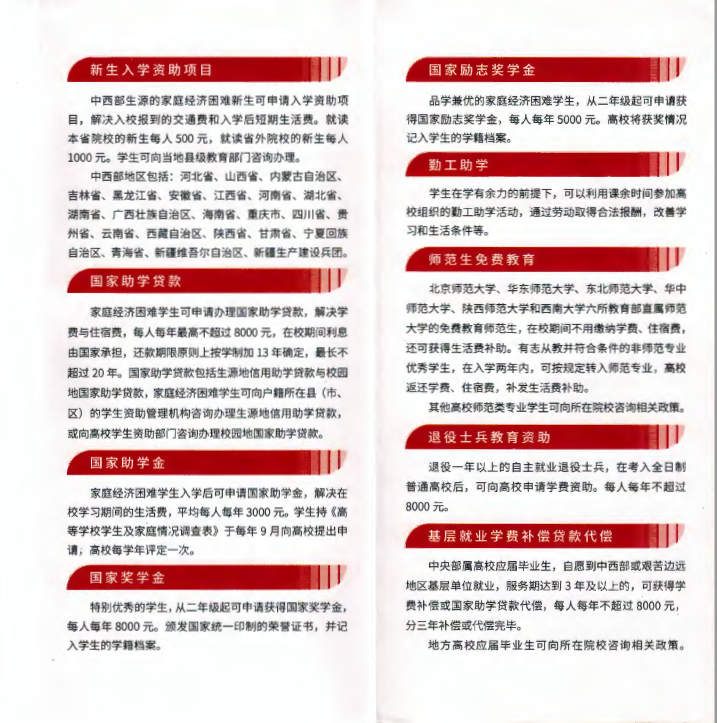 高校本专科学生资助政策简介