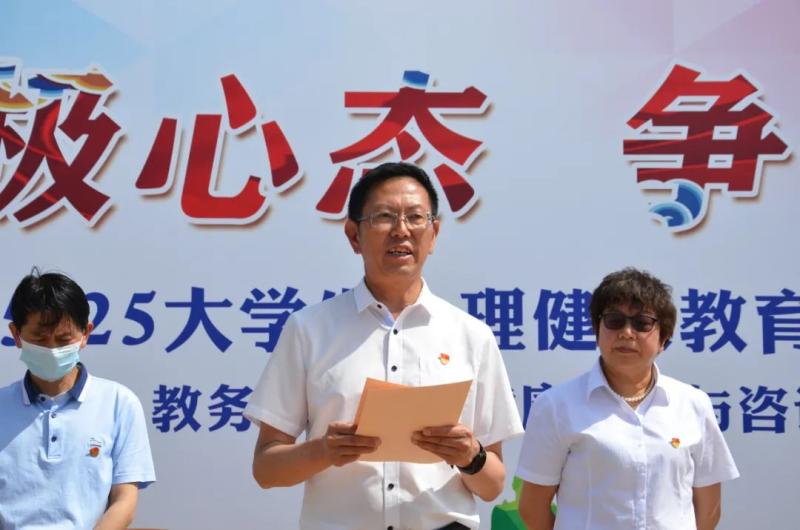 学校党委副书记、院长蔡德周在致辞中指出,大学生心理健康教育工作是高校立德树人中心工作的一个重要内容,要坚持在校党委的全面领导下开展大学生心理健康教育工作,促进形成教育教学、实践活动、咨询服务、预防干预“四位一体”的心理健康教育工作格局;要以增长学生心理健康知识,提升心理调适能力,培育心理健康自助互助意识为目标,切实让学生养成“5·25我爱我”的心理成长路径;要以“5·25”为契机,在校园内广泛开展宣传教育活动,形成全方位的心理育人氛围。