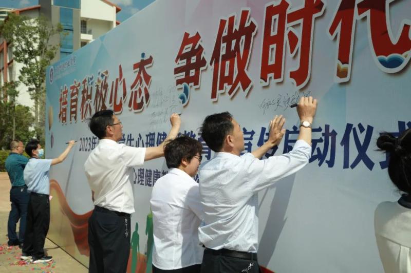 5月24日下午,我校第一届“5·25”大学生心理健康教育月主题系列活动宣传启动仪式在学校知行广场隆重举行。校领导、中层干部、全体辅导员、班主任,各班班长、心理委员共计约200人参加启动仪式。